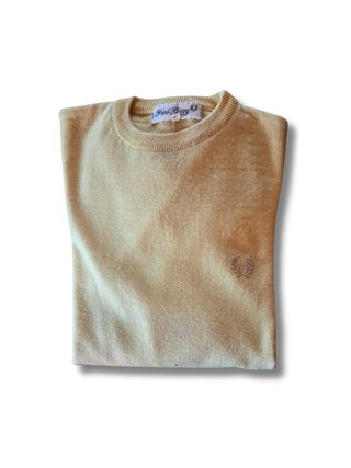 Jersey clásico en color camel muy ponible de cuello redondo y muy calentito ya que es 100% cashmere. El color real es el que se ve en la foto donde aparece la etiqueta con la talla y la descripción del cashmere 100% ( lo aclaro ya que depende la luz de las fotos puede tender a más clarito). Tiene un pequeño agujero en uni de los puños como se puede ver en la última foto (con una puntada se arreglar facil).