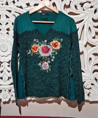 Jersey Desigual verde bordado flores Talla S