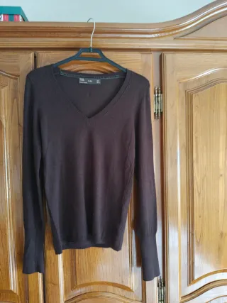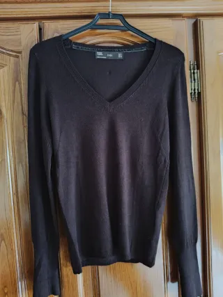 Jersey Zara marrón cuello pico talla S