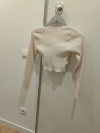 Jersey Crop corto, con cuello alto. De color gris Talla S aunque da bastante talla De Stradivarius De esta temporada pasada 2024 Precio original 25,99 euros