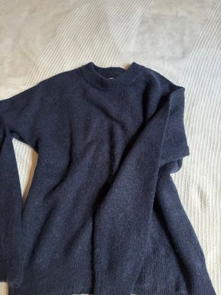Jersey de punto fino con cuello redondo. - Tejido suave con mezcla de lana y alpaca. - Diseño clásico y versátil. color azul oscuro talla S no veo ningún defecto tejido muy amable y calentito