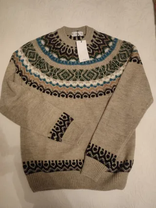 Jersey de punto de la marca Sfera. - Diseño jaspeado en tonos beige y marrón. - Cuello redondo. - Manga larga midi - Bajo y puños de canalé. Largo y amplio Puesto un dia Talla S