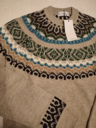 Jersey de lana con diseño jacquard. - Cuello redondo. - Manga larga. - Bajo y puños de canalé. - Unisex.