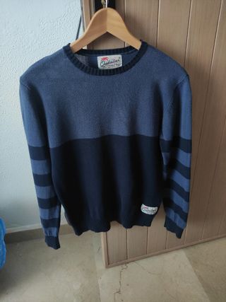 Jersey de punto fino con cuello en V. - Logo de la marca bordado en el pecho. - Puños y bajo elásticos. Corresponde a una Talla S Sólo hago envíos En muy buenísimas condiciones Más cositas en mi perfil