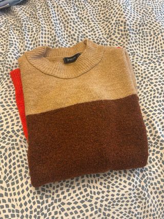 jersey marrón y naranja talla S manga larga tejido gustoso y muy abrigadito me lo he puesto menos de 5 veces