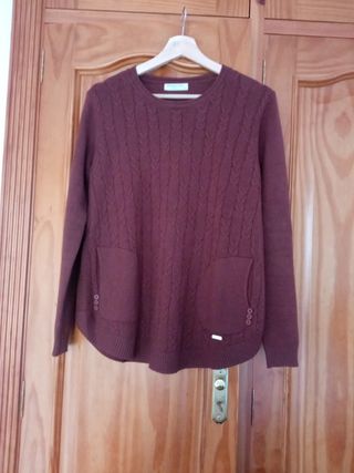 Jersey marrón con dos bolsillos uno de cada lado, talla s/m pero viste grande