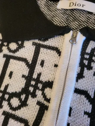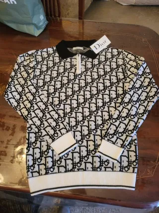 Jersey de punto con el icónico logo de Christian Dior. - Diseño de monograma en blanco y negro. - Cuello tipo polo con cremallera. - Puños y bajo de canalé.