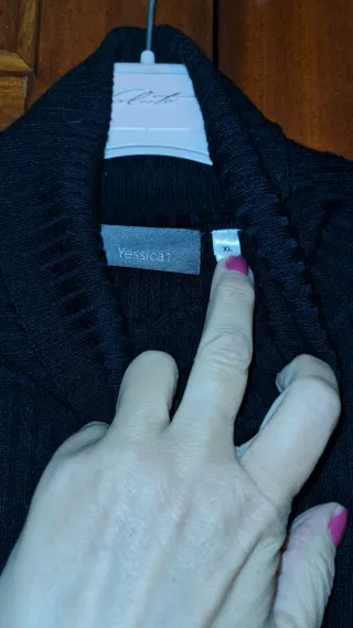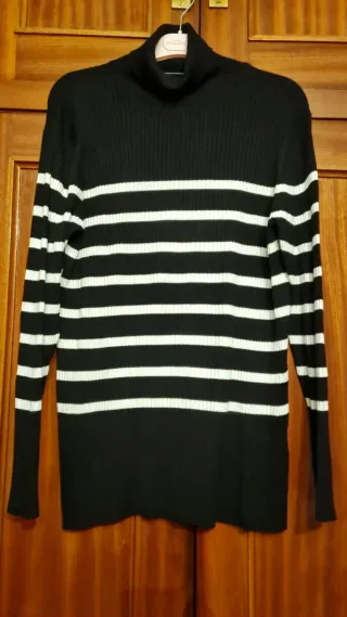 Jersey de punto con cuello alto. - Manga larga. - Puños y bajo de canalé. - Calentito. Es una talla XL, pero vale para talla S si te gusta holgado o talla M perfecto.