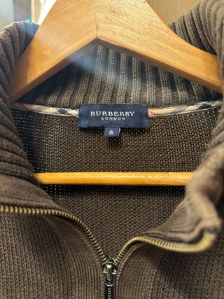 Jersey de punto de la marca Burberry en color marrón. Presenta un diseño con cuello alto y cierre de cremallera. - PVP 595€ - Cuello alto acanalado. - Cierre de cremallera. - Detalle de cuadros en el interior del cuello.