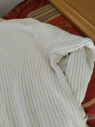 Jersey de punto suave y agradable al tacto. Su diseño es versátil y cómodo. La talla pone que es una XL pero creo que es más para una M ó L - Tejido de chenilla. - Cuello redondo. - Manga larga.