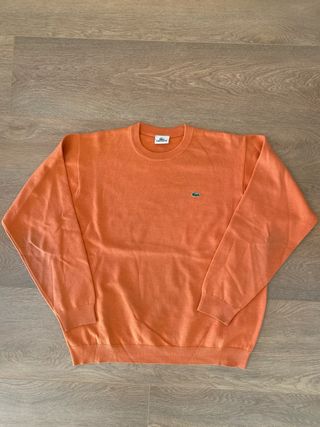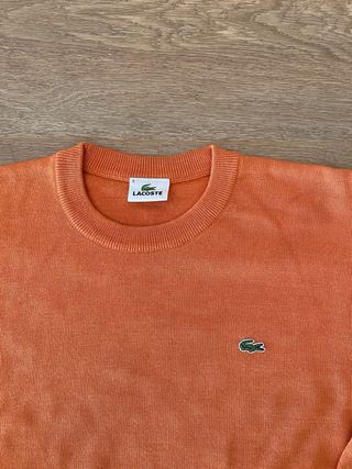 ✅ Como nuevo ❤️ Prenda original comprada en tienda oficial de primera línea de producción nada de outlet ni segunda mano 📦 Recogida en Bcn o Envío en 24/48h Jersey de punto fino en color naranja, con el icónico cocodrilo de la marca bordado en el pecho. - Cuello redondo. - Manga larga. - Puños y bajo elásticos.