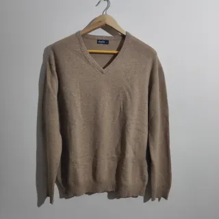 100% Lana Jersey Hombre Talla XL Beige V-neck