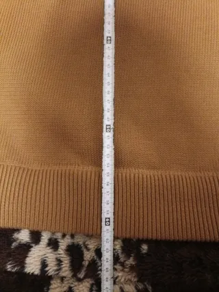 Jersey de punto fino con cuello en V. - Color mostaza. - Manga larga. Talla XL. Medidas: 70 cm de largo, 60 cm de ancho y 60 cm de mangas.