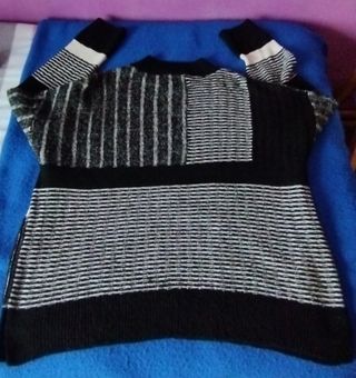 Jersey de punto gordo de mujer. Dibujo de pata de gallo en color gris claro con negro. Talla XL pero das más talla.