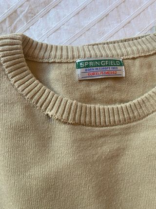 Jersey beige de Springfield de cuello redondo. El jersey está bien pero tiene un descosido en el cuello. Talla: XL