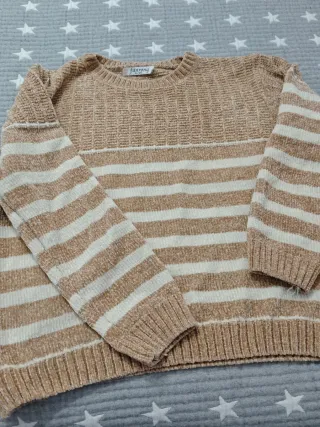 Jersey de punto con rayas en tonos beige y blanco. Un básico cómodo y versátil. - Diseño de rayas horizontales. - Tejido suave y agradable al tacto.