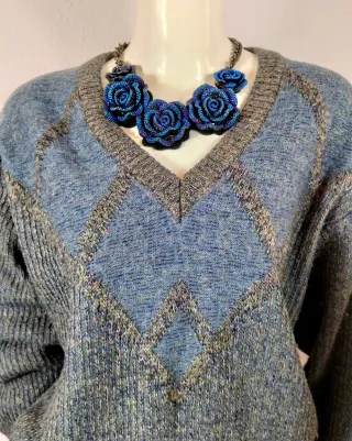 Jersey de punto trenzado en color azul. - Diseño clásico con cuello redondo. - Etiqueta original incluida.