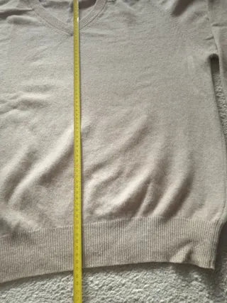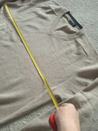 Jersey de punto para hombre con cuello en V. Pura lana. Largo 66 cm, sisa a sisa 60cm y ombros 60 cm. - Color beige. - Cuello en V. - Manga larga.