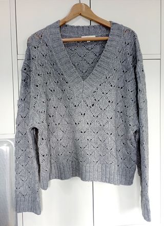 Precioso jersey de punto con textura semicalado color gris, escote de pico, marca JCL Talla XL, mide de axila a axila 58 cm y de alto 57. Esta como nuevo, es muy bonito. Mira mi perfil puede que te guste algo más.