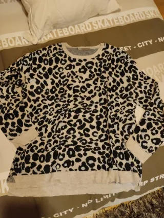 Jersey de mujer con un llamativo estampado de leopardo. Su diseño lo hace perfecto para añadir un toque salvaje a tu armario. - Diseño de leopardo. - Cuello redondo. - Manga larga.
