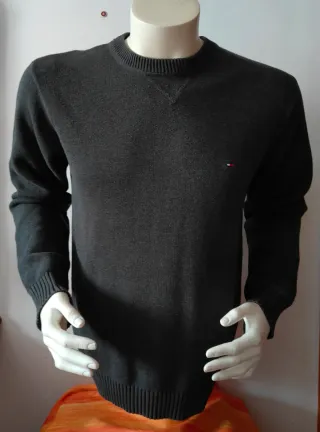Jersey de manga larga de la marca Tommy Hilfiger. Talla amplia valdria a gente con M y L sin problema. - Cuello redondo. - Puños y bajo acanalados. - Pequeño logo bordado en el pecho.