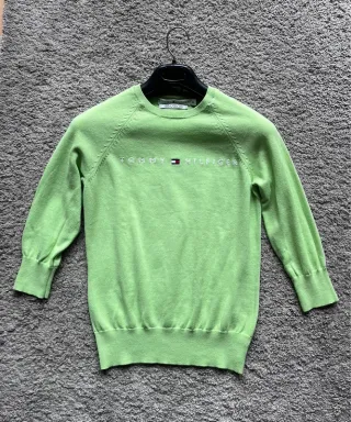 👕 Jersey de punto Tommy Hilfiger original 💚 Color verde lima, tejido de algodón suave y de alta calidad 🎯 Cuello en pico (V-neck) con acabado elástico ✨ Logotipo bordado clásico en el pecho 📏 Talla L Precio en tienda sin descuento: 89€ - 99€ ✅ En muy buen estado, solo tiene descoloridos en la parte frontal, casi no se notan 📦 Envío rápido 💬 Escucho ofertas