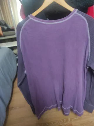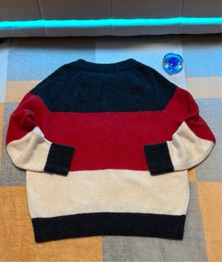 Jersey de manga larga con diseño de bloques de color. Aunque en la etiqueta pone talla XS es porque es americano, pero en tallas de España equivale a una M. Usado un par de veces solamente. - Cuello redondo. - Tejido texturizado en la parte superior. - Detalle de franjas en blanco y rojo.