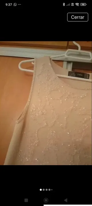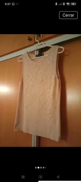Jersey de tirantes de Zara en color beige, con un diseño delicado de pedrería. - Diseño con motivos florales y lineales. - Detalle de pequeñas cuentas brillantes. - Corte recto y cómodo. - medidas en fotos. - Se adapta muy bien al cuerpo. - Muy fino, sienta genial.