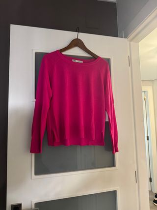 Jersey de punto Zara en color fucsia. - Tejido suave y cálido. - Cuello redondo. - Manga larga.