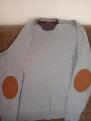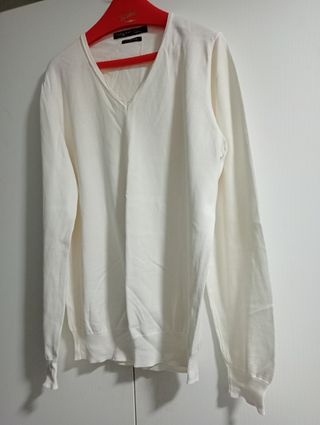 Jersey de punto fino con cuello en pico. - Manga larga. - Tejido suave al tacto. Es una talla M pero es pequeño, parece una S