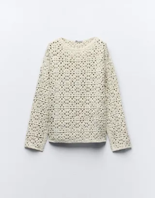 Jersey de crochet de Zara - Tejido calado. - Cuello redondo. - Manga larga.