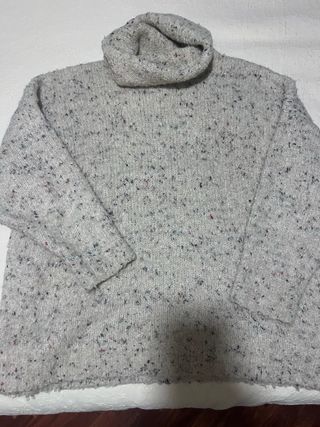 Jersey de punto grueso con cuello alto, en tonos grises y negros. Es talla M y está como nuevo.