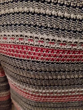 Jersey de punto con cuello barco y manga larga.Las medidas estan en la foto. - Diseño jaspeado en tonos rojos y negros. - Tejido suave y cómodo.