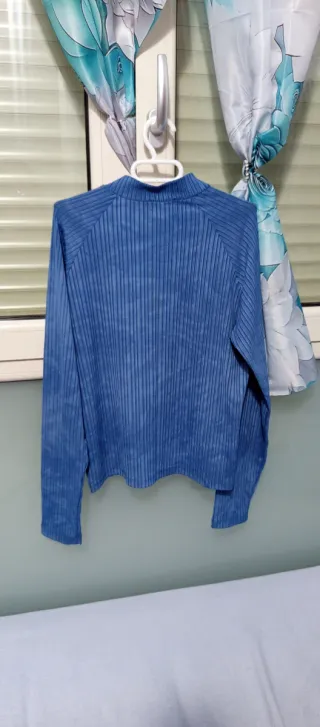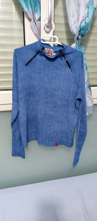 Jersey de punto con cuello alto y detalle de cremallera. No es elástico Medidas: 49 largo, 46 ancho y 56 de mangas - Diseño de canalé. - Cremallera frontal. - Cuello asimétrico.