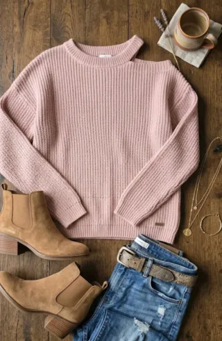 Jersey de punto fino con un diseño moderno y un corte asimétrico en el cuello. - Tejido suave y agradable al tacto. - Manga larga. - Detalle de etiqueta en la parte inferior.