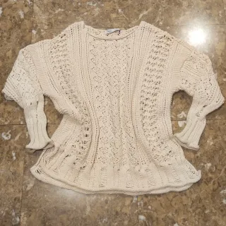 Jersey de punto con un diseño calado muy bonito. Es oversize y muy cómodo. - Manga larga. - Cuello redondo. - Bajo y puños acanalados.