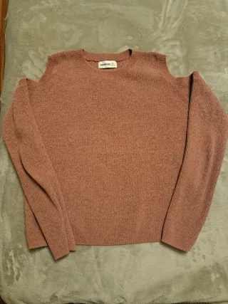 Jersey de punto fino en color rosa, con un diseño moderno de hombros descubiertos, en perfecto estado, muy suave y ni una bola. El color rosa es muy favocedor. - Manga larga. - Cuello redondo.