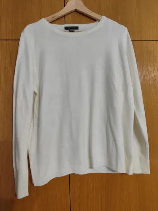 Jersey fino de punto en color crema. Es una prenda versátil y cómoda. - Tejido ligero. - Cuello redondo. - Manga larga.