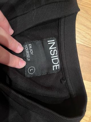 Jersey negro con un diseño moderno y detalles de color. en perfecto estado, de Inside, talla L aunque tambien vale para una M o S - Mangas largas. - Diseño de bloques de color en los laterales. - Texto ONE DAY OR DAY ONE YOU DECIDE en la parte delantera.