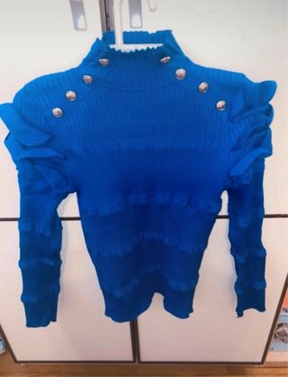 Jersey color azul. - Detalle de volantes en los hombros. - Botones en el cuello.