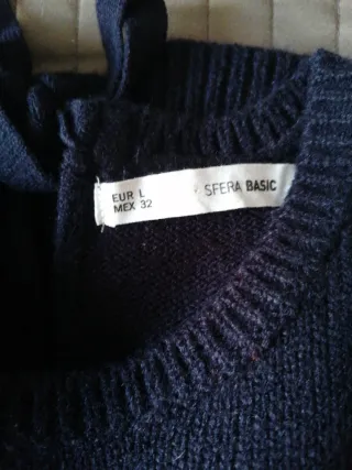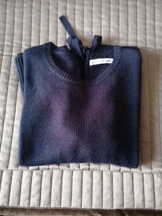 Jersey de punto azul marino de la marca Sfera. - Cuello redondo. - Detalle de lazada en la espalda. - Aberturas laterales en la cadera.