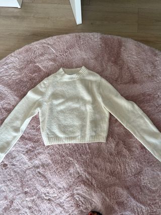 Jersey grueso de Stradivarius en color blanco. Es una prenda cómoda y versátil. - Tejido suave y cálido. - Diseño de cuello redondo. - Manga larga.