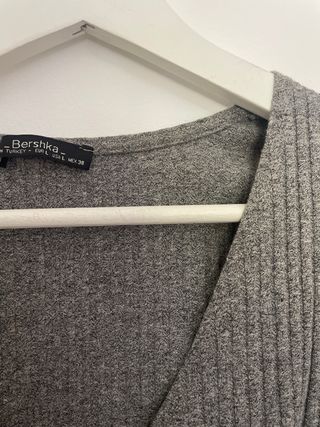 Jersey corte Crop Top de Stradivarius en color beige, en muy buen estado - Diseño de manga larga. - Corte cropped. - Cuello en pico.