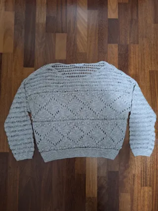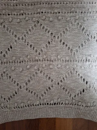 Jersey de punto gris talla M/L, con un diseño calado y rombos. Muy buen estado poco usado. Mango. 68% algodón, 32% lino. - Manga larga. - Cuello redondo. - Tejido suave.