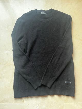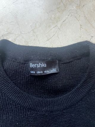 Jersey de punto fino en color negro de la marca Bershka. - Cuello redondo. - Manga larga. - Detalle de etiqueta en la parte inferior.