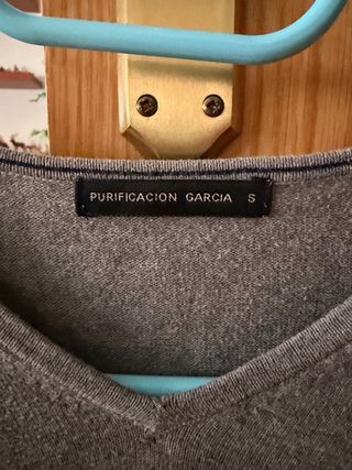 Jersey de punto fino de Purificación García en color gris. Presenta un cuello en pico y un discreto logo en el pecho. - Cuello en pico. - Manga larga. - Logo en el pecho.