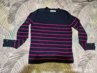 Jersey de Sfera con un diseño de rayas. - Diseño de rayas horizontales. - Puños con detalle de botones dorados. Las rayas son de color rojo, aunque en las fotos parecen fucsias. Está en perfecto estado. Echa un vistazo a mi perfil. Si te interesa algo más, puedes crear un lote y te aplicaré un descuento.