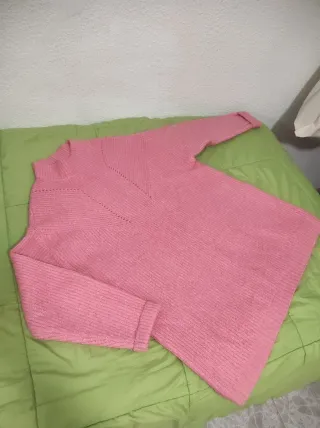 Jersey de punto fino en color rosa. - Cuello redondo. - Manga larga. - Bajo y puños con detalle. - Está bien cuidado, no tiene desperfectos, tal y como se observa en las imagenes. - Cualquier duda, consultar sin compromiso.