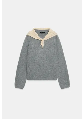 Jersey Zara Gris Cuello Calado