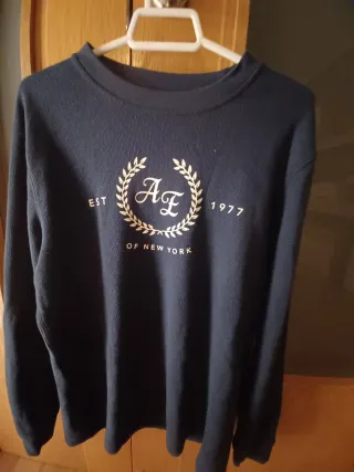 Jersey de manga larga para niño de la marca American Eagle. Presenta un diseño clásico con un escudo bordado en la parte delantera. - Cuello redondo. - Estampado AF 1977 OF NEW YORK en el pecho. - Tejido suave y cómodo.